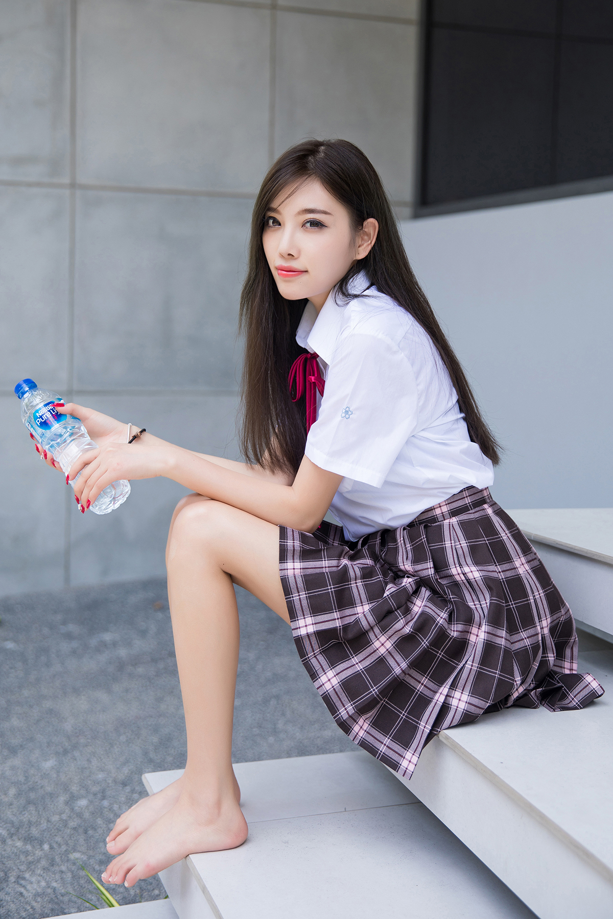 Asian girls are always blowing my mind, especially with a name as sweet as Sugar, not to mention her doll-like perfection. She's wearing a classic sexy schoolgirl uniform, slowly undressing and revealing her plump breasts.