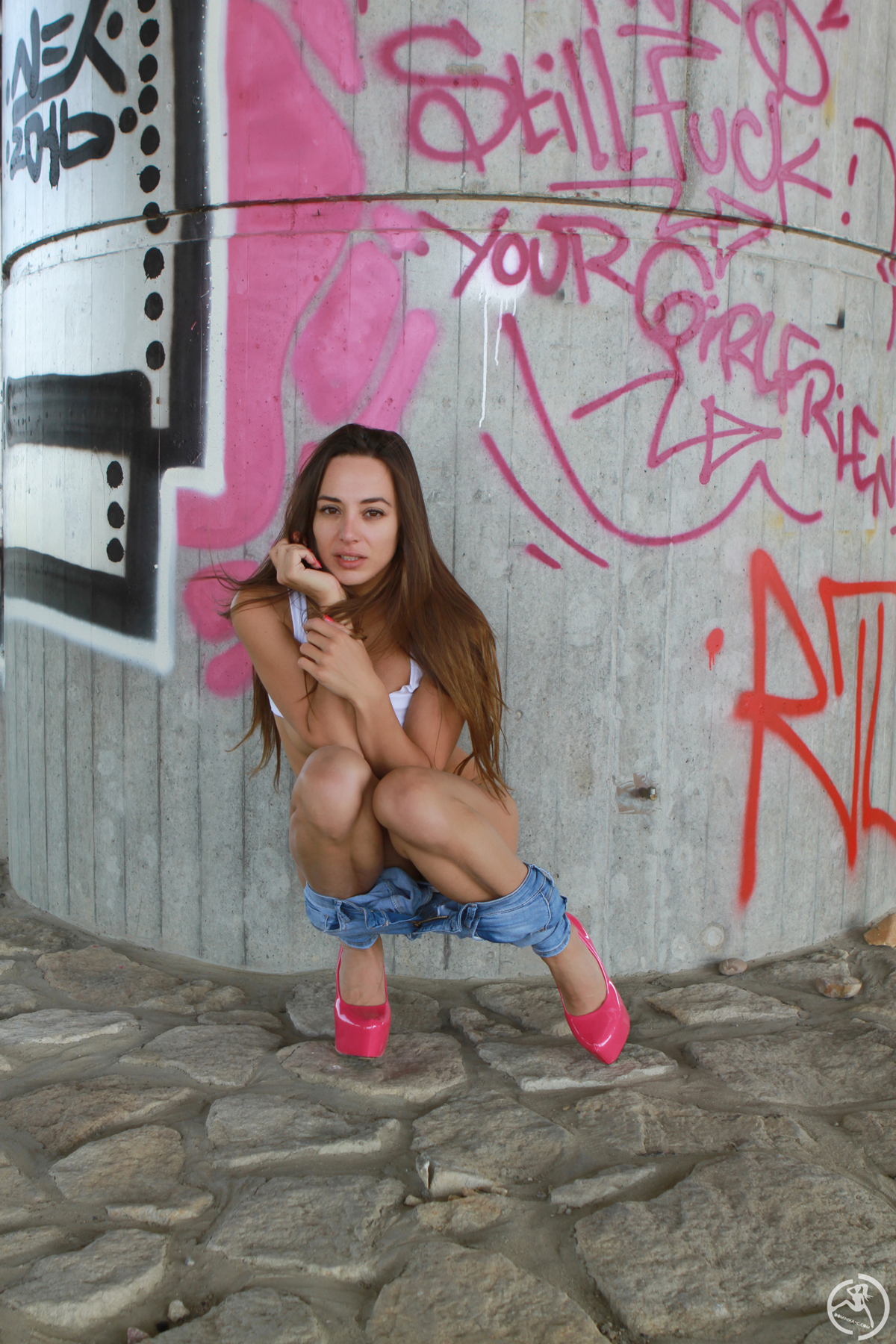 Brunette babe Dominika C invites us on an urban journey, wearing tight jeans ripped at the perfect spots, revealing her juicy pussy. I dig her pink heels matching with her nails and omg those jeans could stay on while we get naughty.