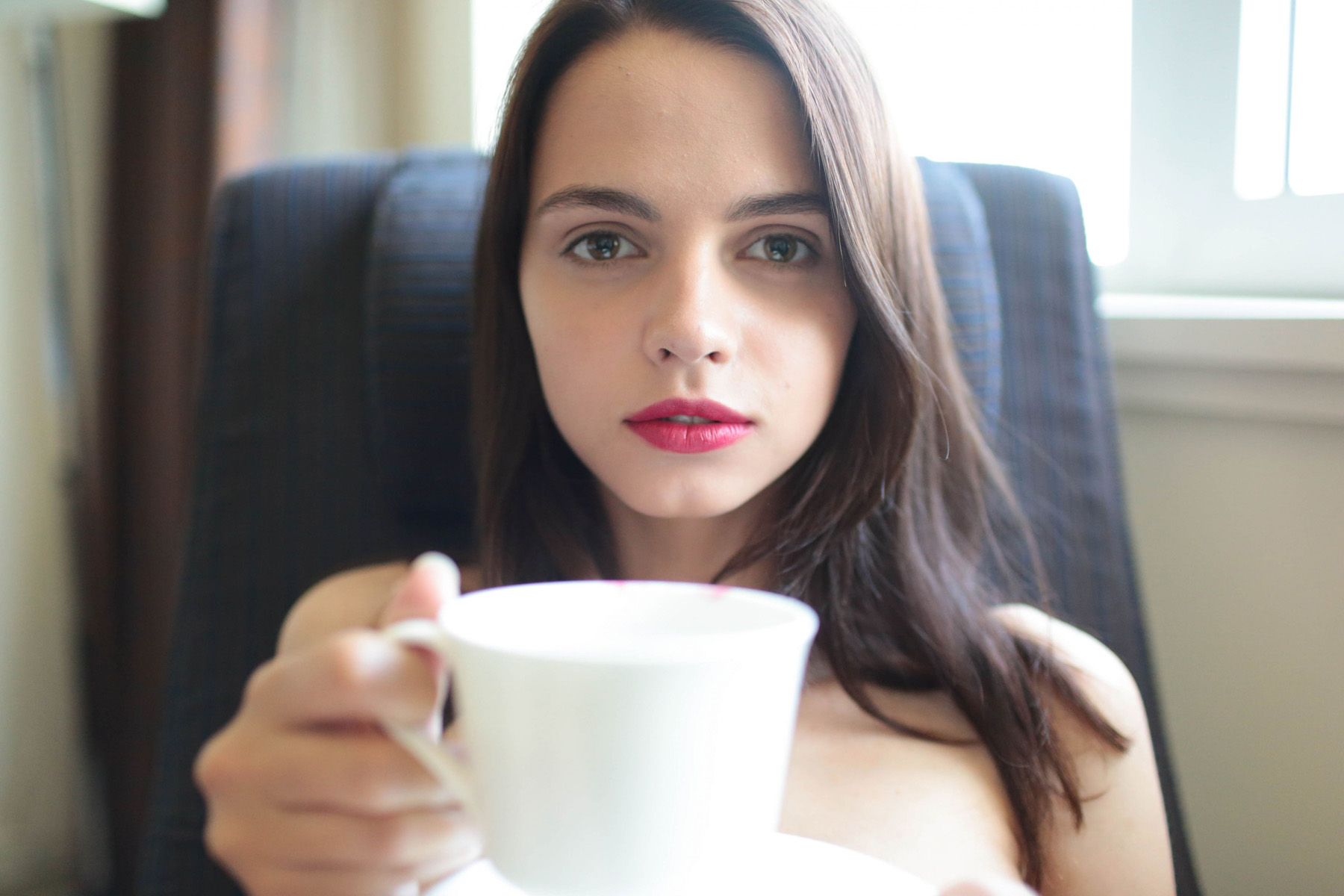 Sweet brunette angel Lilit Ariel loves her tea time while being naked, showing us a perfect panorama of her beautiful pussy. She has mesmerizing eyes and those bright red lips are seductively complementing her porcelain pale skin.