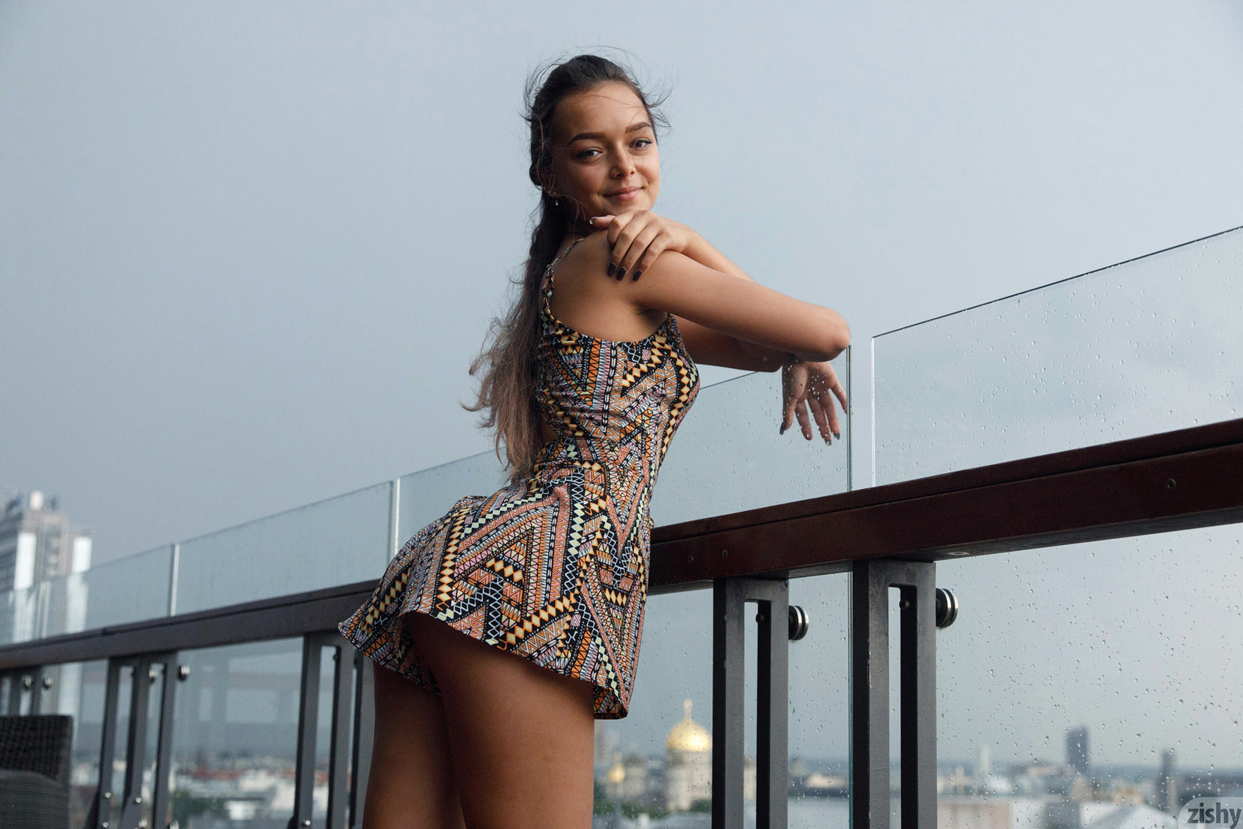 Beautiful brunette next door girl Slava Konevs invites us on a vivid city trip in Riga, showing us the best views of the city and herself. She playfully licks her delicious ice cream, then teases us with flashing her perfect butt.